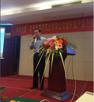 2014年11月30日公司在江苏省常州市成功举办了单螺杆泵产品介绍会,常州地区近40多家大、中型干燥设备生产厂家代表参加了会议。根据今年年初对常州地区干燥行业的市场调研,常州、无锡地区一带莫诺泵的销量很大,但此种泵质量不稳定、寿命不长。为此,我公司有针对性地开发了新一代的用于此工况的单螺杆泵GF10-1满足用户的需要,是全面替代莫诺泵的新一代单螺泵产品。 GF10-1-6/0.25 :配普通Y2电机,电机为三相、6极0.25kW,泵的额定压力为0.3MPa、0.6MPa,流量为120L/h,电机的额定转速为850r/min; GF10-1-4/0.37VP:配变频电机,电机最高转速为1330 r/min,最低150 r/min,压力为0.3MPa、0.6MPa,流量为0-250L/h. GF10-1-40.37/VP(带普通变频器):为了用户使用的方便,公司特意设计了一种变频器安置在泵上 GF10-1-0.37MB:UD型无级变速电机,变速电机的最高转速为1000 r/min,最低转速200 r/min,泵的压力为0.3MPa、0.6MPa,流量0-160 L/h,该型号泵结构可靠,启动扭矩大,使用方便。 四种新产品样机 工程师向客户介绍新产品 公司总经理王春强先生致欢迎词 公司董事长王嘉龙先生总结发言